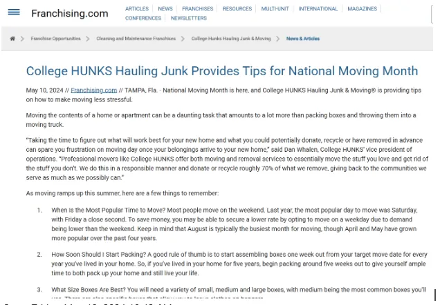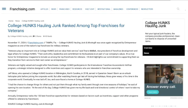 #1 Moving & Junk Removal Franchise – Entrepreneur Magazine